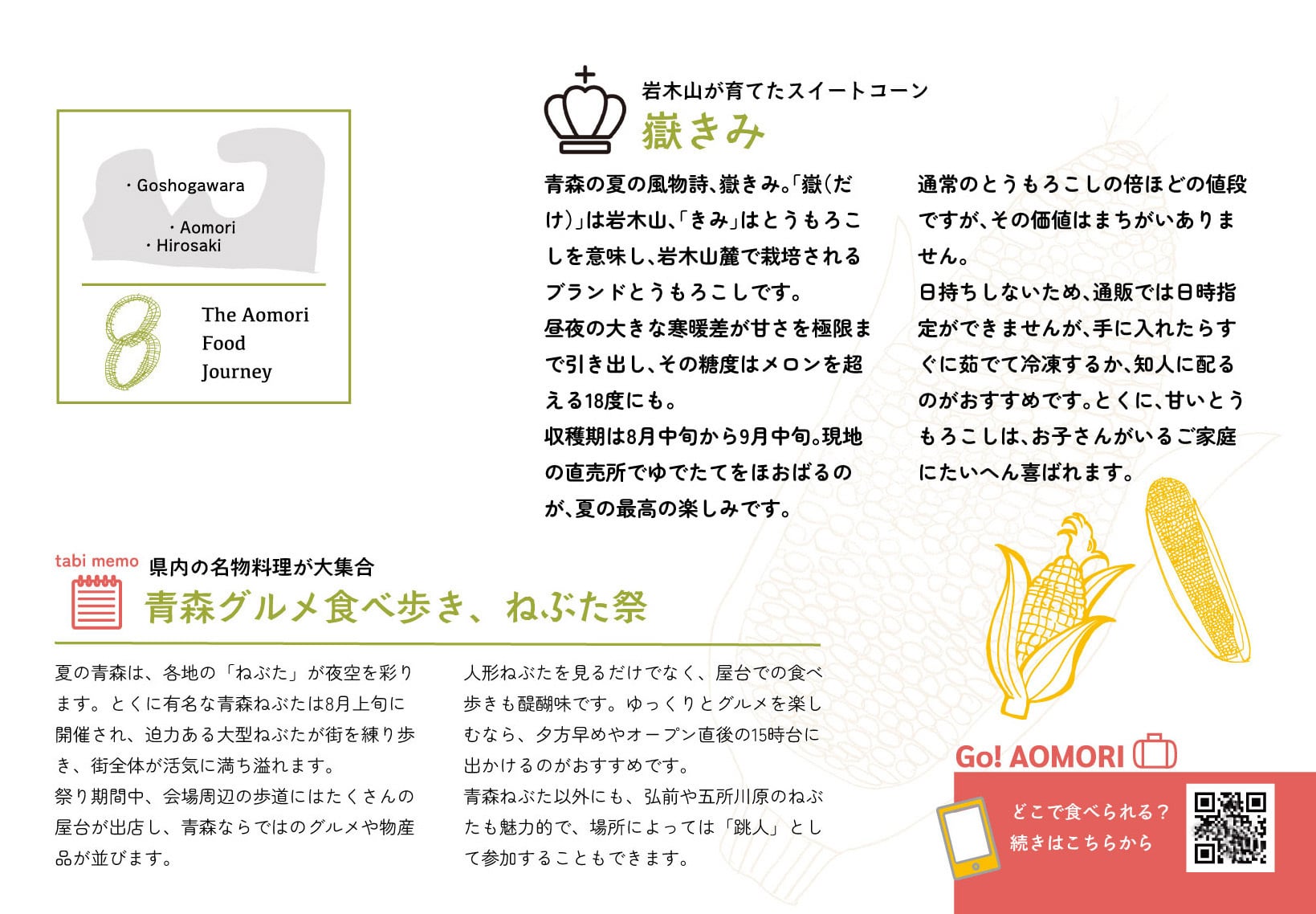 特 徴:各月ごと青森の旬情報を集めたホームページと連携(QRコード付き)